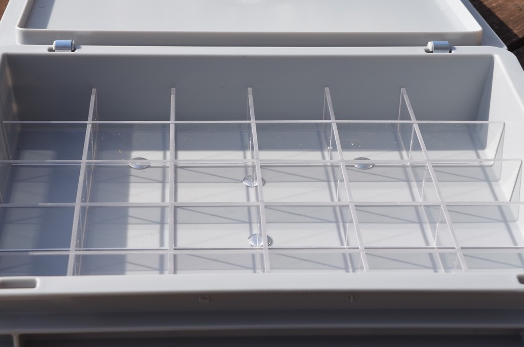 Unsere Dip Dosen- Einteilung aus Kunststoffglas sind so hergestellt, dass diese in unseren Feederboxen "Dip" passen und Sie sich Ihre "Fächer" selbst einteilen können. Es ist ein Stecksystem das so zugeschnitten ist, damit man die unterschiedlichsten Fächer für unterschiedlichen Dip Dosen zusammen stecken kann.